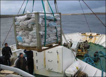 -Los barcos de empresarios españoles que estaban actuando con bandera de Malvinas consideran la situación como expectante. Lógicamente nuestros empresarios tienen inquietud por ver el desarrollo de los acontecimientos y sobre cuál va a ser el resultado. Supongo, y así me lo han dado a entender, que mantendrán en el congelador determinadas decisiones que tienen que ver con desarrollos futuros muy vinculados con la pesca. Lo fundamental es que, a nuestro juicio, el interés del gobierno uruguayo y del españoles de mantener a Montevideo como puerto libre y que sea accesible a los pesqueros españoles es compartido.