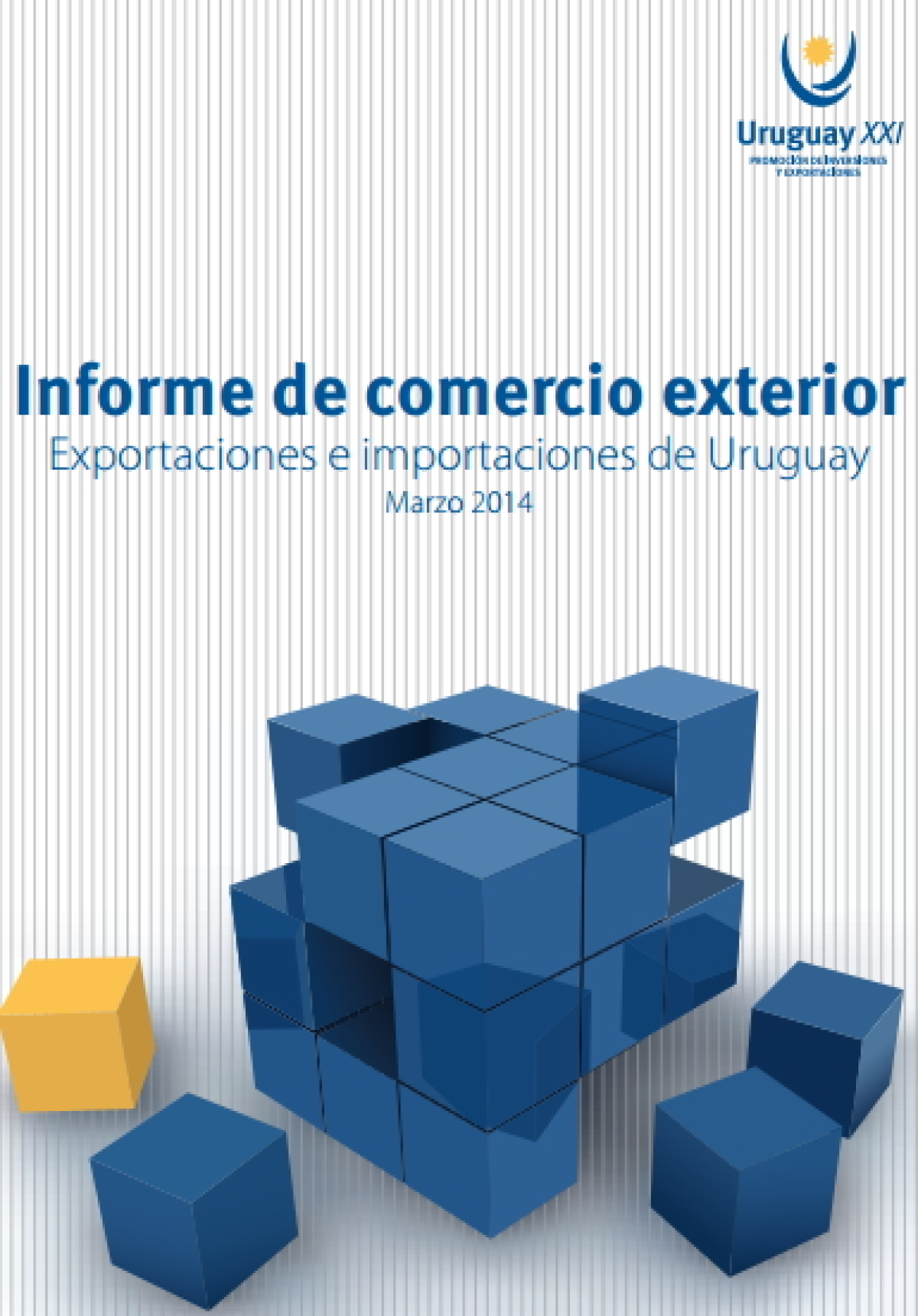 El último informe del Instituto Uruguay XXI indica que las exportaciones llegaron a 713 millones de dólares en marzo, 16,2 % más que el mismo mes de 2013, sin considerar las ventas desde zonas francas. Los principales productos vendidos por el país al exterior son, en orden de mayor a menor, la carne bovina, el arroz, la leche y la nata. Tomando los datos del primer trimestre de 2014 se llega a 1.831 millones de dólares. Noticia publicada en Presidencia, 07/4/2014.